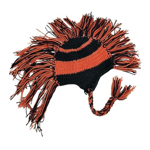 Creative Funny Hat Knitted Hat Halloween Cosplay Dress Up Fringed Red Crown Roman Trapper Hat, D, One Size