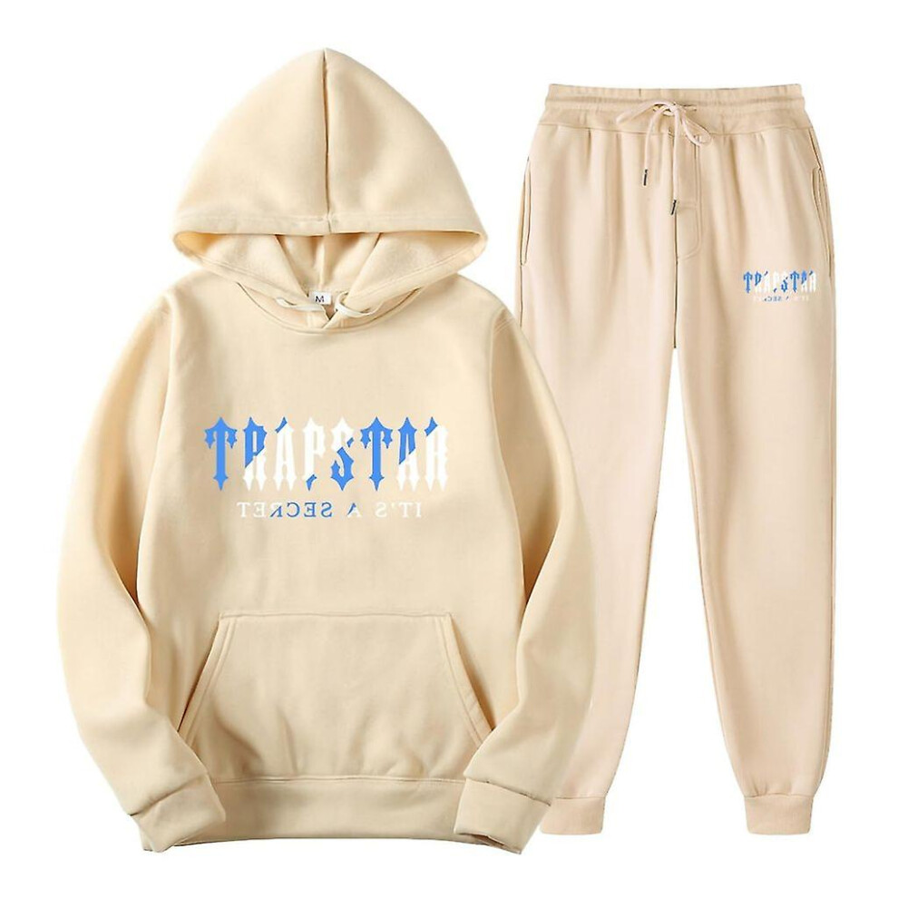 (Brown, L) Jogging Suit For Men And Women, Tracksuit With Trapstar Print, Unisex Sports Suit Set, 2 Piece Hoodie, Sports Trousers, Hoodie, Jogging Bot