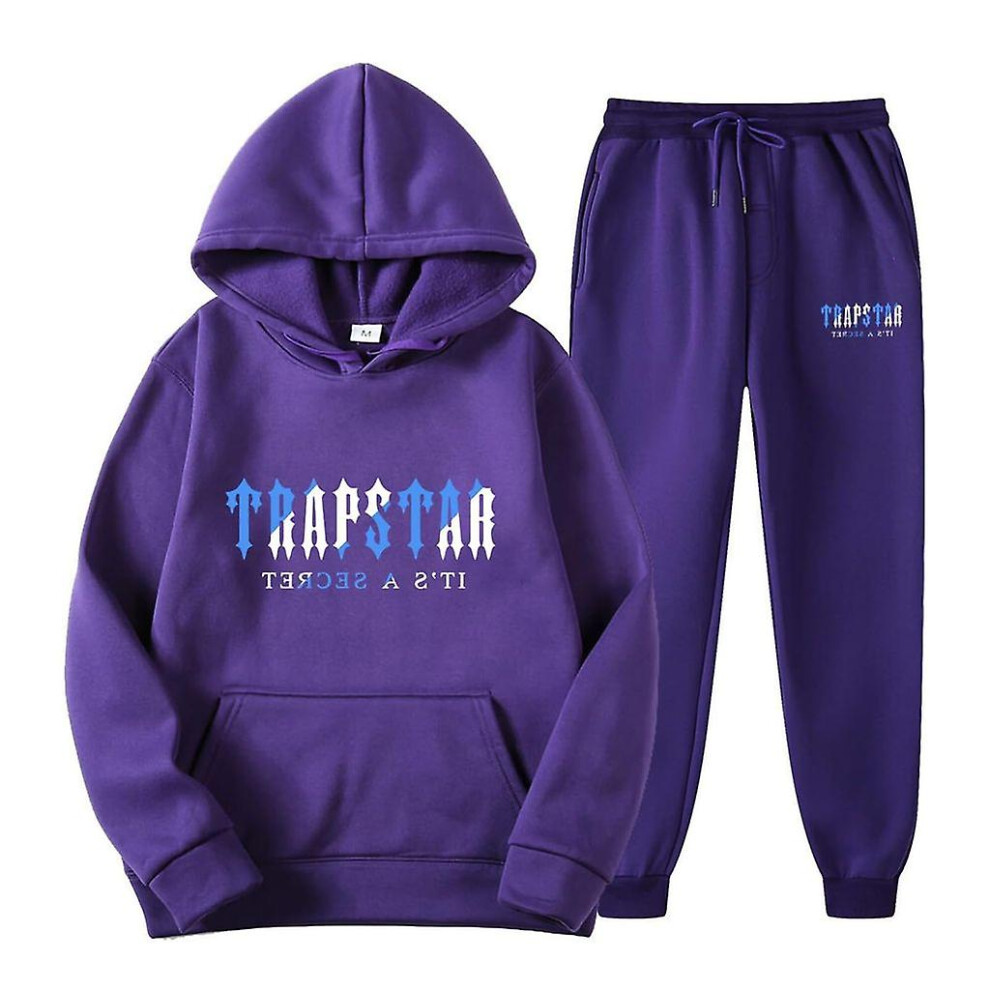 (Purple, L) Jogging Suit For Men And Women, Tracksuit With Trapstar Print, Unisex Sports Suit Set, 2 Piece Hoodie, Sports Trousers, Hoodie, Jogging Bo