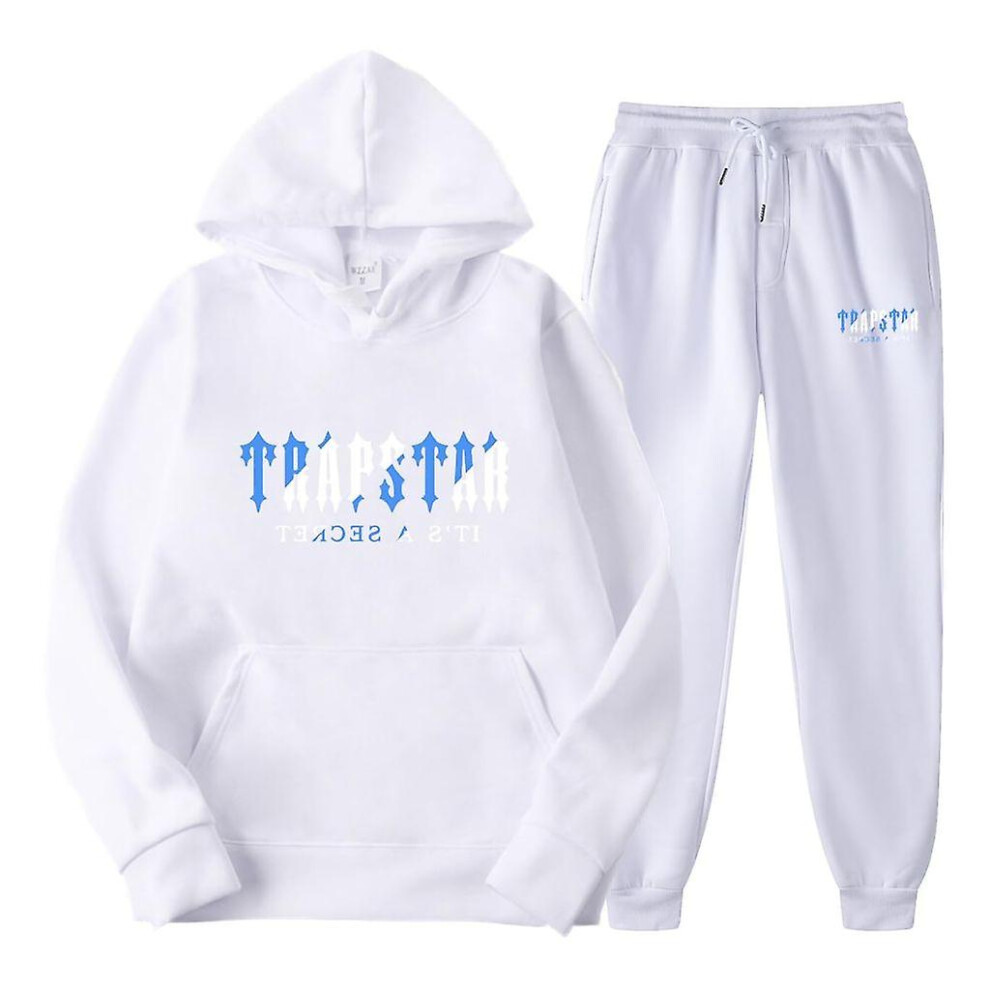 (White, L) Jogging Suit For Men And Women, Tracksuit With Trapstar Print, Unisex Sports Suit Set, 2 Piece Hoodie, Sports Trousers, Hoodie, Jogging Bot