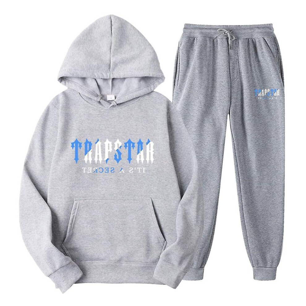 (Gray, XL) Jogging Suit For Men And Women, Tracksuit With Trapstar Print, Unisex Sports Suit Set, 2 Piece Hoodie, Sports Trousers, Hoodie, Jogging Bot