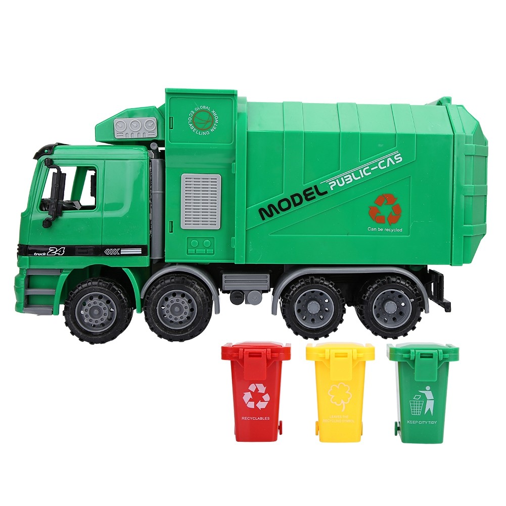 Garbage Truck Toys 1:32 Large Toy Truck With 4 Trash Bins Light Sounds Birthday