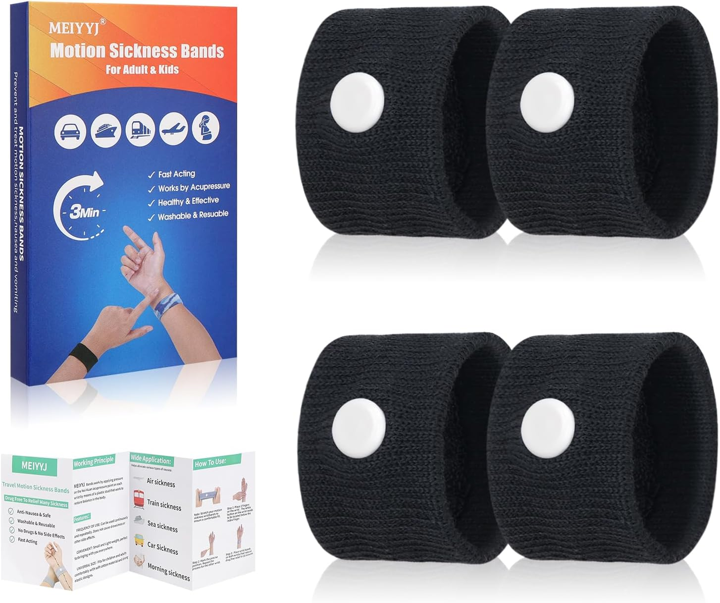 YILINNA 4 Pcs Anti Nausea Wristband Motion Sickness Bracelets Adjustable Motion Nausea Relief Bands for Motion Sickness, Morning Sickness Car Sickness Travel Sickness