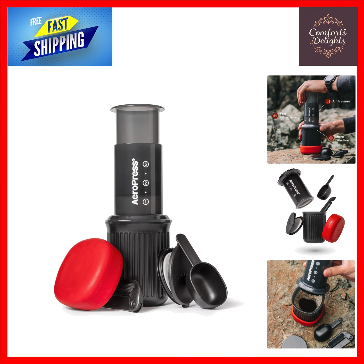 Travel Coffee Maker with Mug & Lid: Brew Espresso & Cold Brew in Minutes