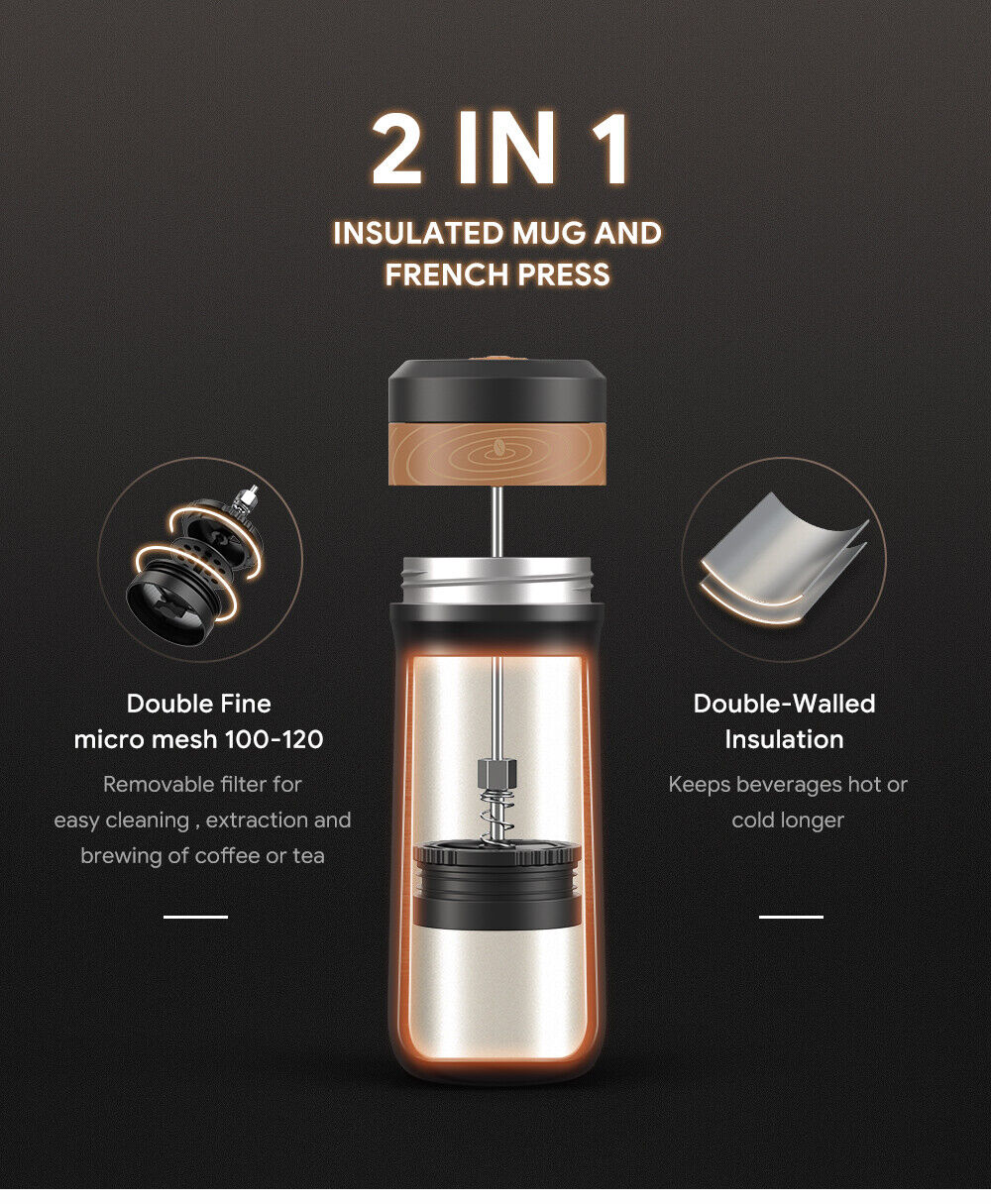 Portable French Press Travel Coffee Maker Double Walled Stainles Steel3416