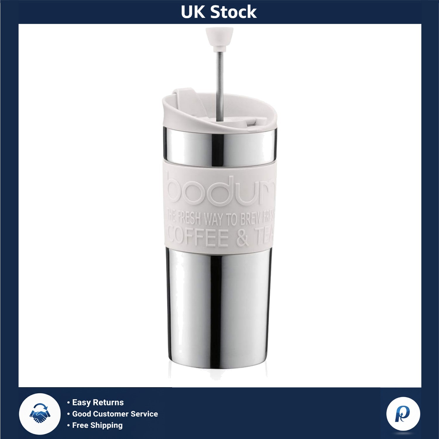 BODUM Travel French Press Coffee Maker, Vacuum, Small, 0.35 L - Off-White