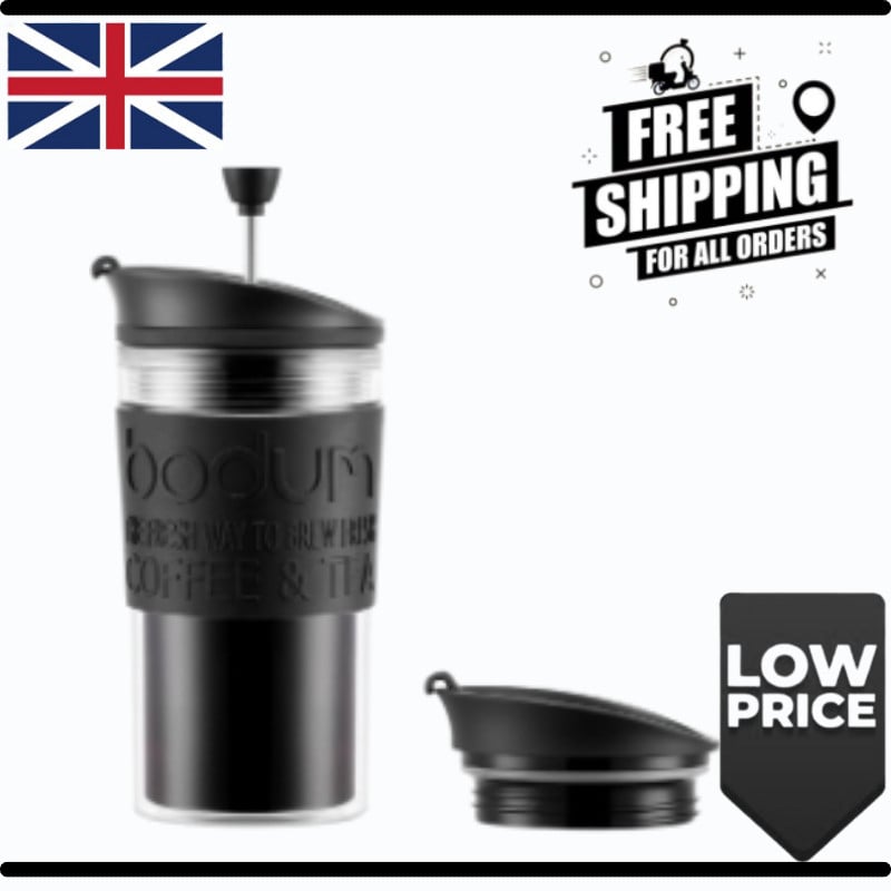 Bodum K11102-01 Travel Press Set Coffee Maker with Extra Lid, Black, 0.35 L