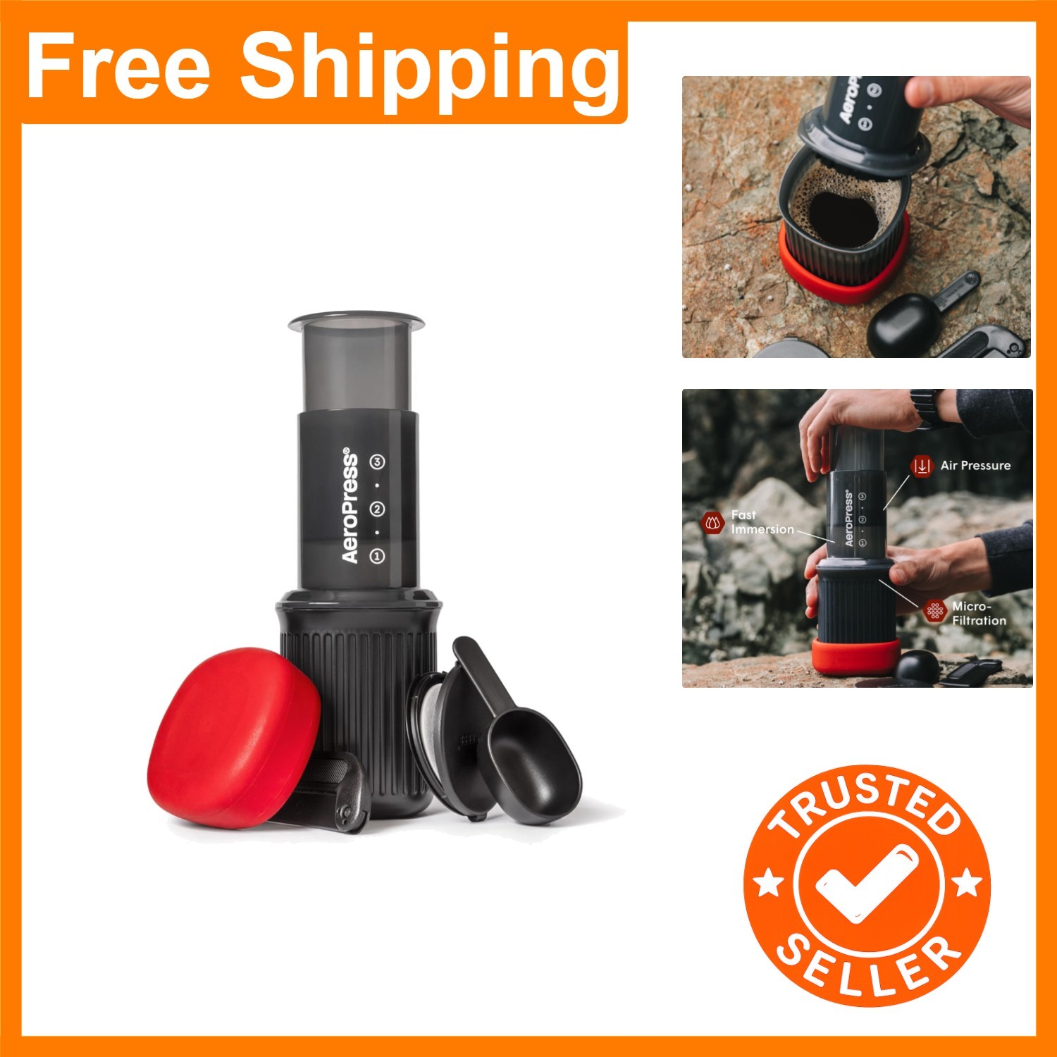 Travel-Friendly Coffee Maker with Mug & Lid - Make Espresso or Cold Brew Easily