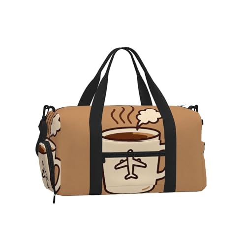 Coffee Travel Mug Sports Duffel Bag with Shoe Compartment-Lightweight Gym Weekender for Men Women, Waterproof Travel Tote with Wet Pocket