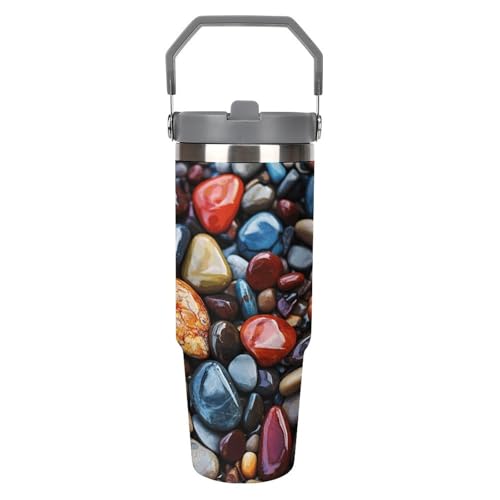 ELUZZIZUT 30 Oz Tumbler with Handle And Sip Lid Stainless Steel Travel Coffee Mug Color Stones Hippie Insulated Car Cup for Outdoor