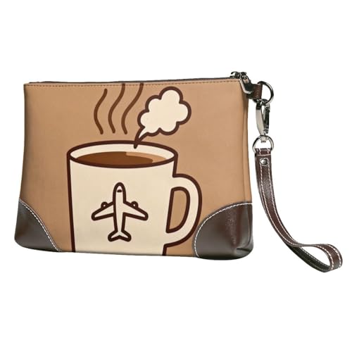 xcoppkj Coffee Travel Mug Premium Genuine Clutch for Women, Wristlet Handbag with Wrist Strap, Travel Organizer for Phone Passport, Cards, Cash