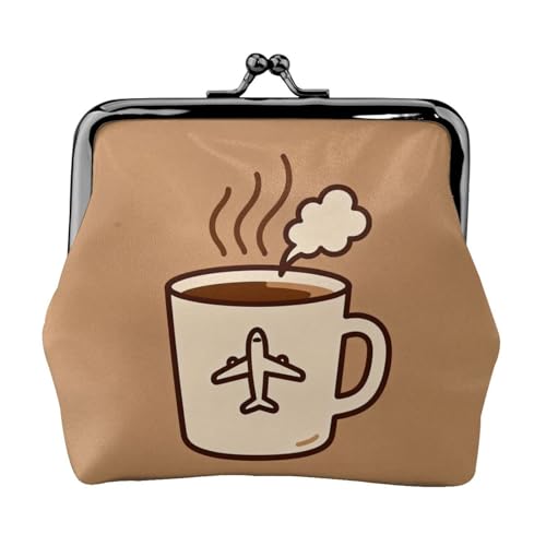 Coffee Travel Mug Leather Coin Purse for Women-Small Kiss Lock Wallet, Mini Card Holder for Keys Lipstick, Cute Change Purse for Travel