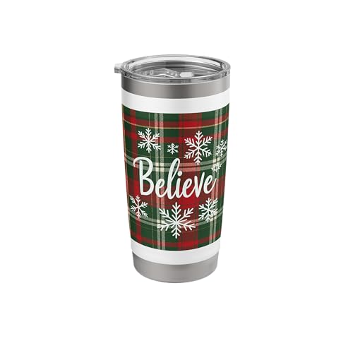 Plaid Believe Christmas Holiday Coffee Travel Mug Cup Gifts Stainless Steel Insulated Tumbler