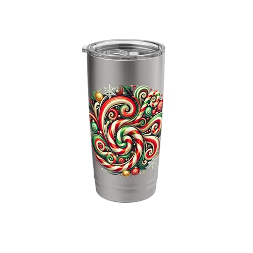 Unique Christmas Candy Cane Swirl Holiday Coffee Travel Mug Stainless Steel Insulated Tumbler