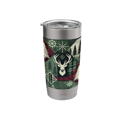 Plaid Christmas Trees Reindeer Snowflake Coffee Travel Mug Stainless Steel Insulated Tumbler