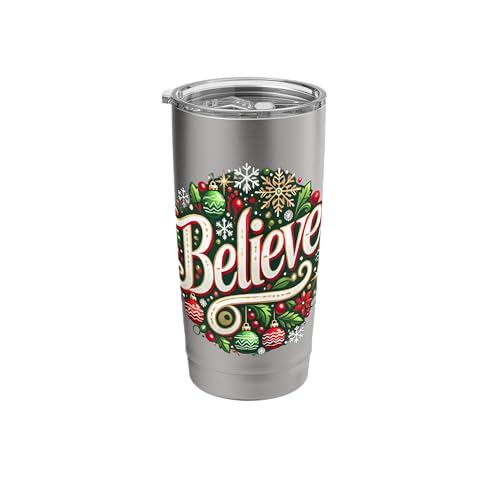 Christmas Holiday Believe Coffee Travel Mug with Lid Gift Stainless Steel Insulated Tumbler