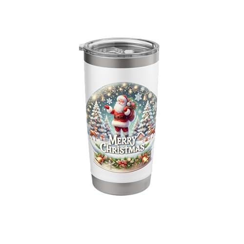Magical Merry Christmas Santa Snow Globe Coffee Travel Mug Stainless Steel Insulated Tumbler
