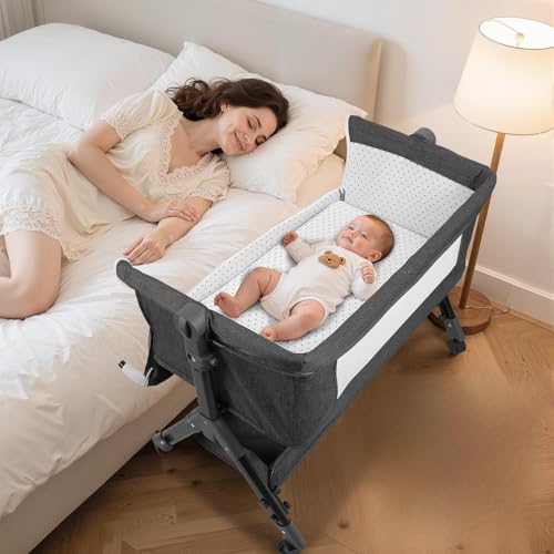 Tneukoom Bedside crib 3 in 1 Baby Crib, baby Cradle, toddler Bassinet, infant Cot, Travel Cot, with Mattress and Changing Table, Folding, Adjustable, Rocking, Portable Crib