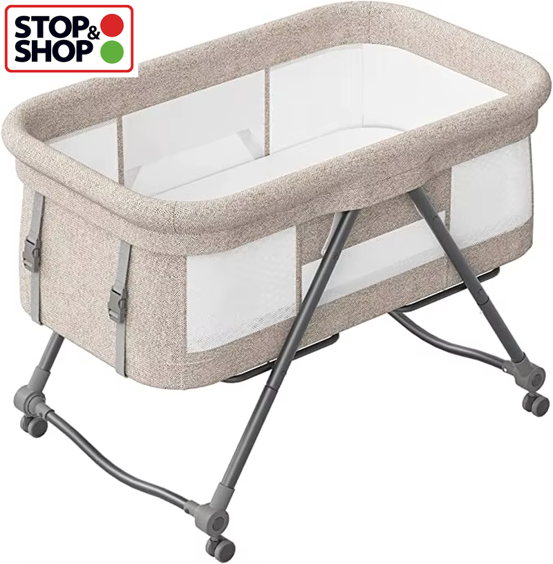 Baby Grab-and-Go Travel Cot with Mattress & Silent Wheels Rocking Crib UK POST