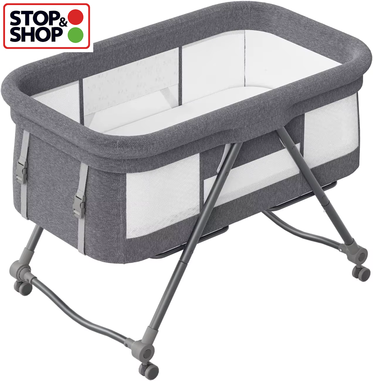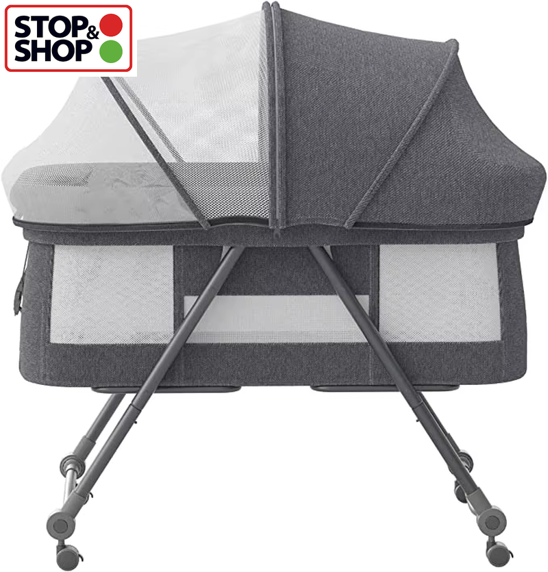 UBRAVOO Grab-and-go Travel Cot, Baby Crib with Mattress I Silent Wheels, Baby Bedside Crib | Rocking Crib Convertible, XYT-001 (Gray - Bravo Basic)