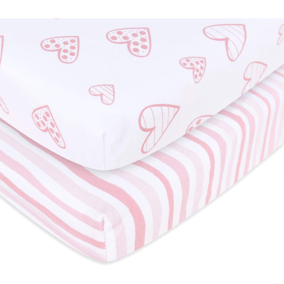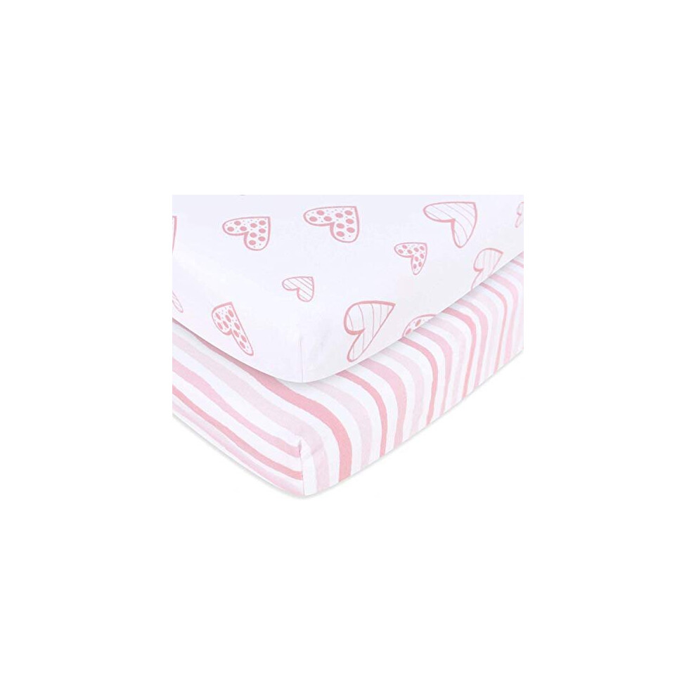 Travel Cot Fitted Sheet, 2 Pack, 100% Jersey Knit Cotton Pack n Play Sheets or Playpen Sheets(9565cm), Ultra Soft and Breathable for Baby Girls