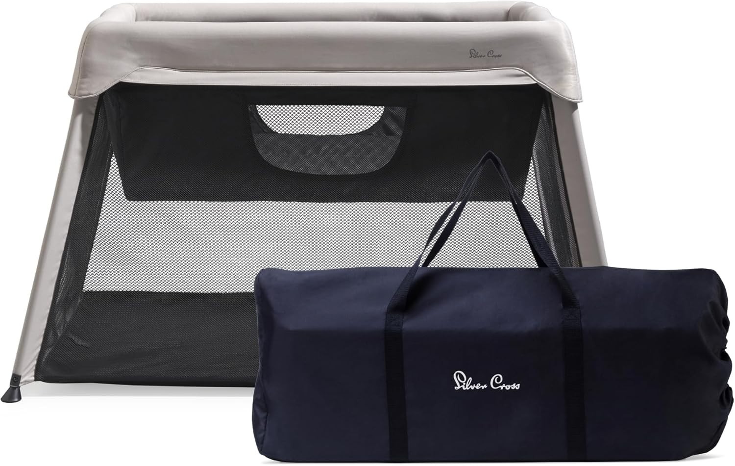Venture Airpod Travel Cot – Lightweight Foldable Baby Cot with Newborn Insert, Mattress, Storage Bag & Playpen Function – Breathable Mesh Sides – Suitable from 0 to 3 Years - Grey