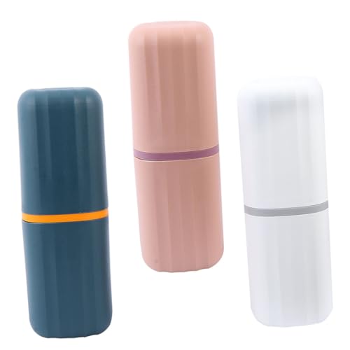 CIYODO 3pcs Portable Toothbrush Cases with Compact Travel Cups Space Saving Toiletry Storage for Toothpaste and Brushes Smooth Rounded Design for Easy Cleaning and Secure Random Color