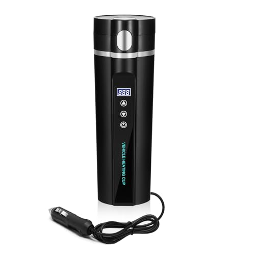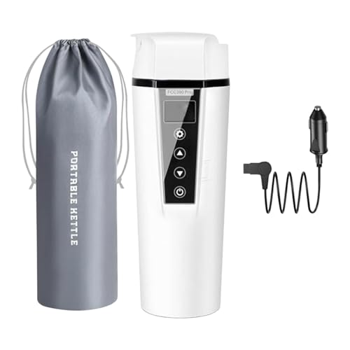 Fonowx Car Kettle Boiler Travel Coffee Cup Electric Heater Water Cup Car Heating Mug Tea Heating Water Camping Outdoor Work, white