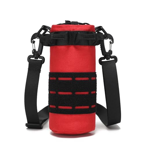 Tactical Molle Water Bottle Pouch Outdoor Sport Hydration Carrier Bag Nylon Travel Kettle Pack with Shoulder Strap(Red)