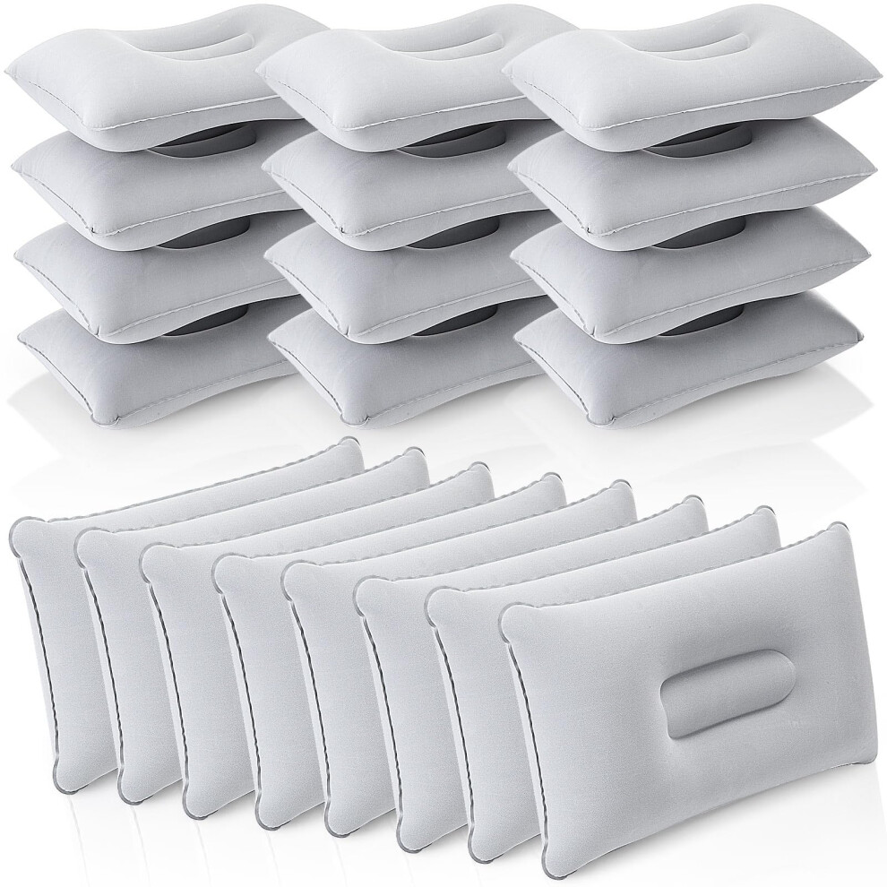 20 Pack Inflatable Travel Pillow Set, Soft Flocking Camping Cushions for Neck and Lumbar Support, Gray