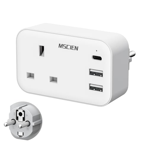 Mscien UK to European Plug Adapter with USB C,Travel Plugs UK to EU for Germany,France,Spain,Turkey,Greece and Iceland,