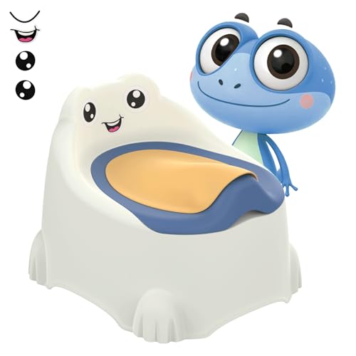 Potty - Potty Training Toilet Seat Travel Potty for Toddlers Toilet Potty with Removable Bowl, Splash Guard & Frog Expression Sticker Portable Toilet Potty for Kids Boys Girls Ages 1-6 Year Old, Blue