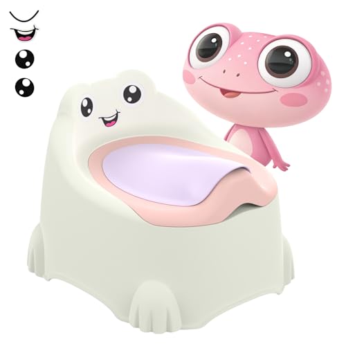 Potty - Potty Training Toilet Seat Travel Potty for Toddlers Toilet Potty with Removable Bowl, Splash Guard & Frog Expression Sticker Portable Toilet Potty for Kids Boys Girls Ages 1-6 Year Old, Pink
