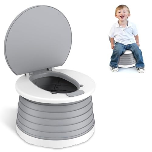 Orzbow Portable Potty for Toddlers, Travel Potty Training Toilet Seat with 4 Legs, Foldable Kids Toilet Seat with 40pcs Potty Bags, Detachable Carry Baby Potty with Splash Guard for Toddlers (Grey)