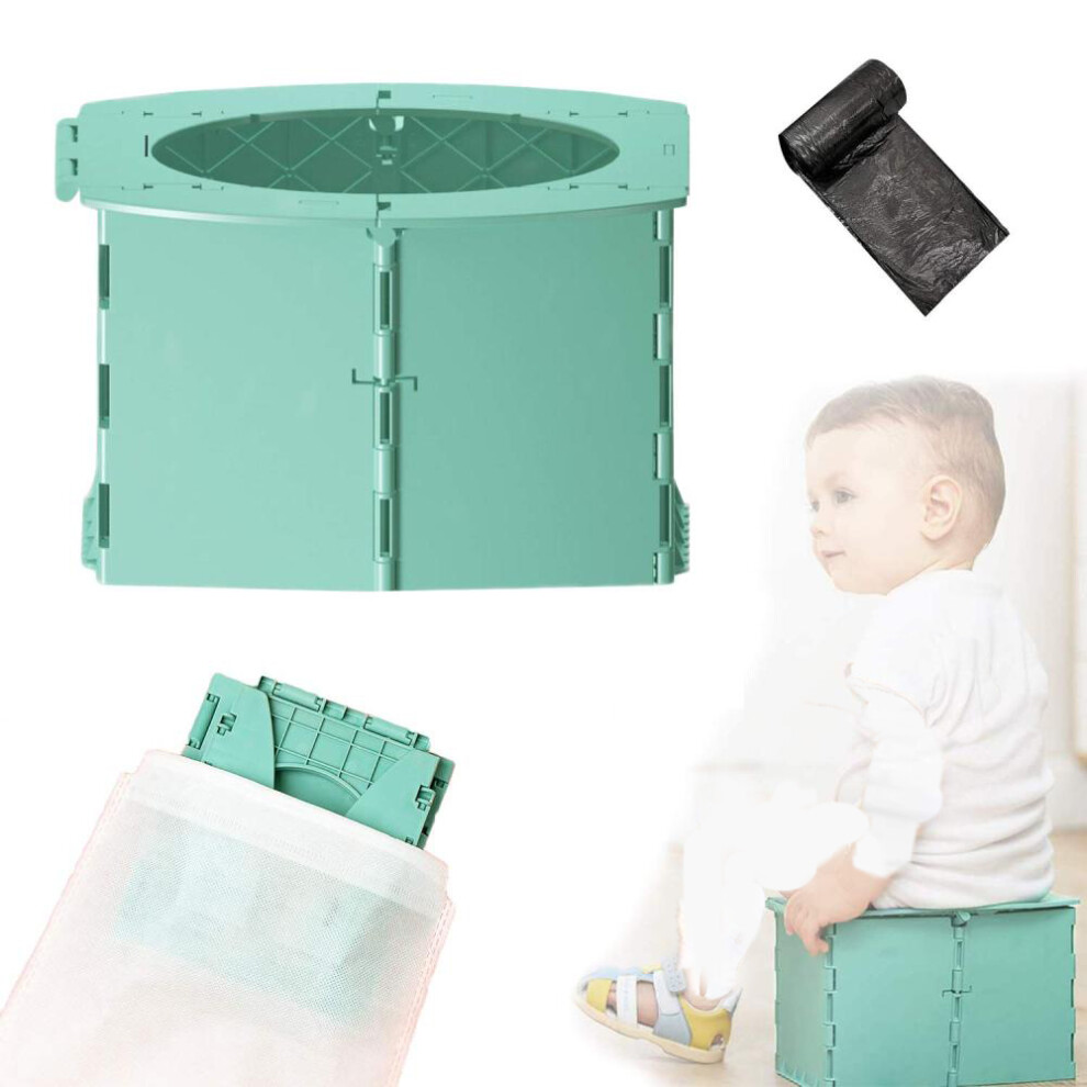Potty Training Toilet Seat Portable Travel Potty for Toddlers 3-in-1 Chairs Baby Foldable WC Liners Detachable Reusable Outdoor and Indoor with Storage Bag Suitable Boys Girls Easy to Clean (Green)