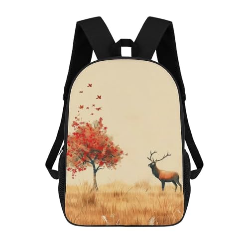 sinyumoney Autumn Deer And Tree Children's School Backpack 3D Printed for Kids Travel Rucksacks Book Bags Kids School Bag 17inch