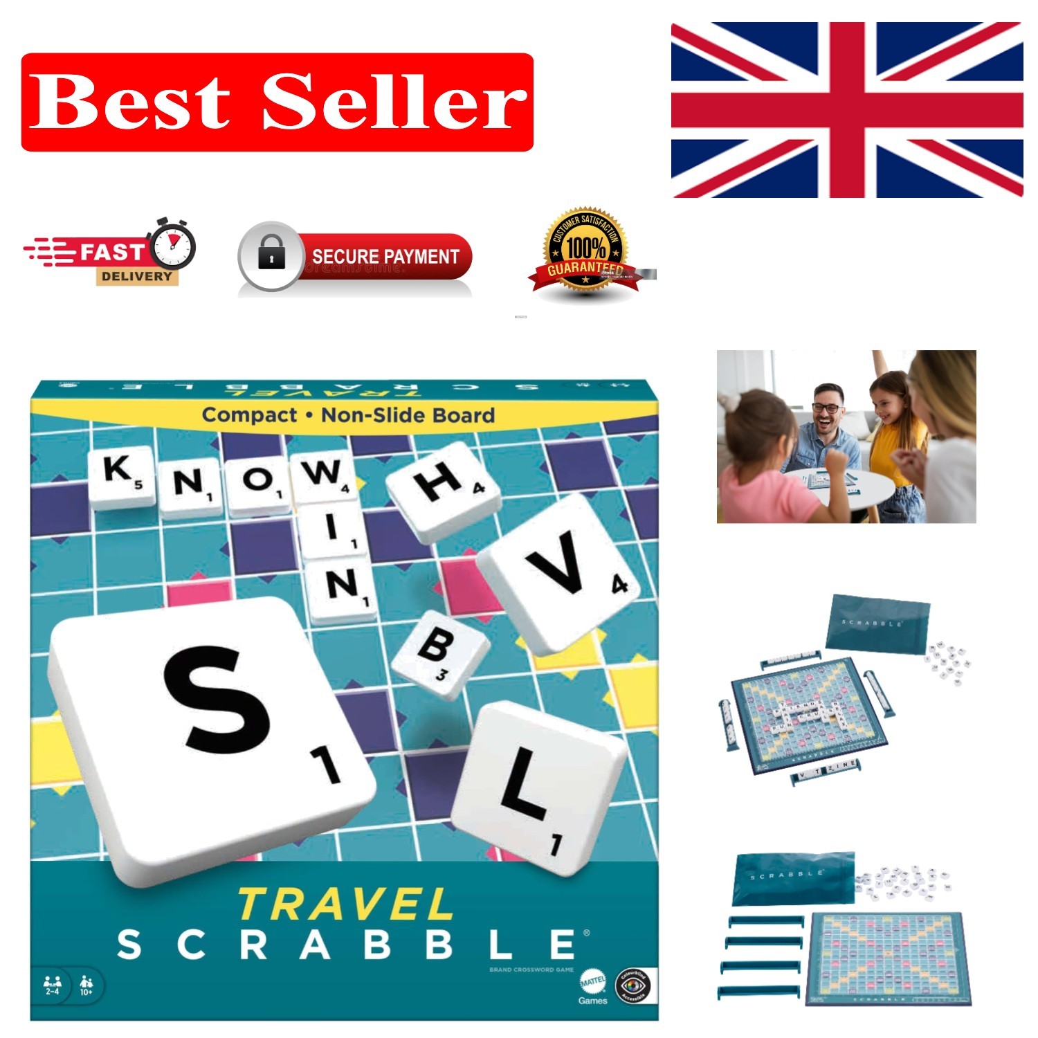Mattel Scrabble Travel Game Compact Portable Board Game 2-4 Players UK Version
