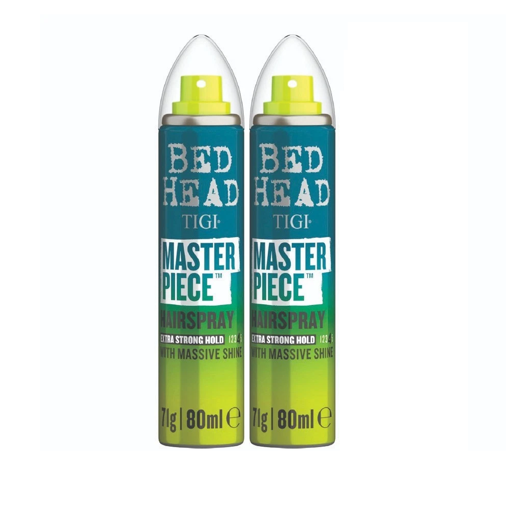 2x TIGI Bed Head MASTERPIECE Massive Shine Strong Hold Hairspray 75ml TravelSize