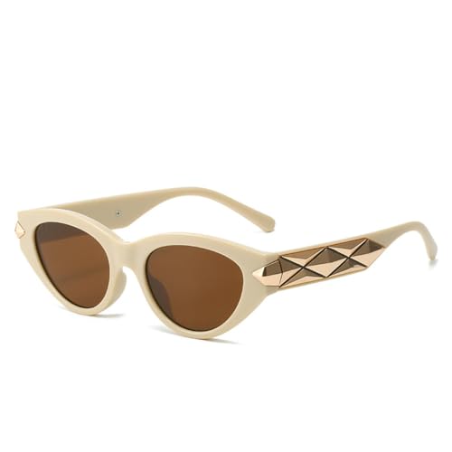 MUTYNE Vintage Punk Sunglasses Men Women Classic Cat Eye Sun Glasses Ladies Retro Travel Style Eyewear Shades UV400 Goggles,Cream brown,One size