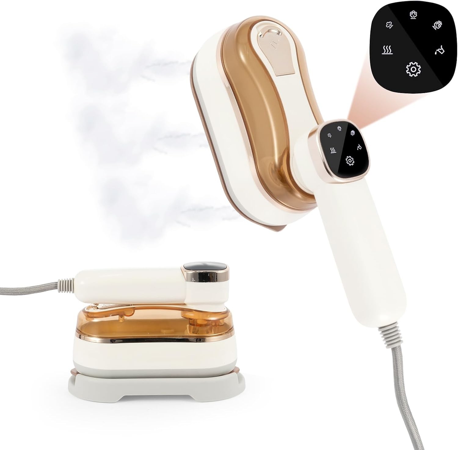 ZStarlite Upgraded - Travel Steamer for Clothes - LED Display & 3+1 Level Steam, Portable Handheld Steamer, Foldable Travel Iron Mini Steam Iron with Ironing Gloves for Travel Home College Dorm(White)
