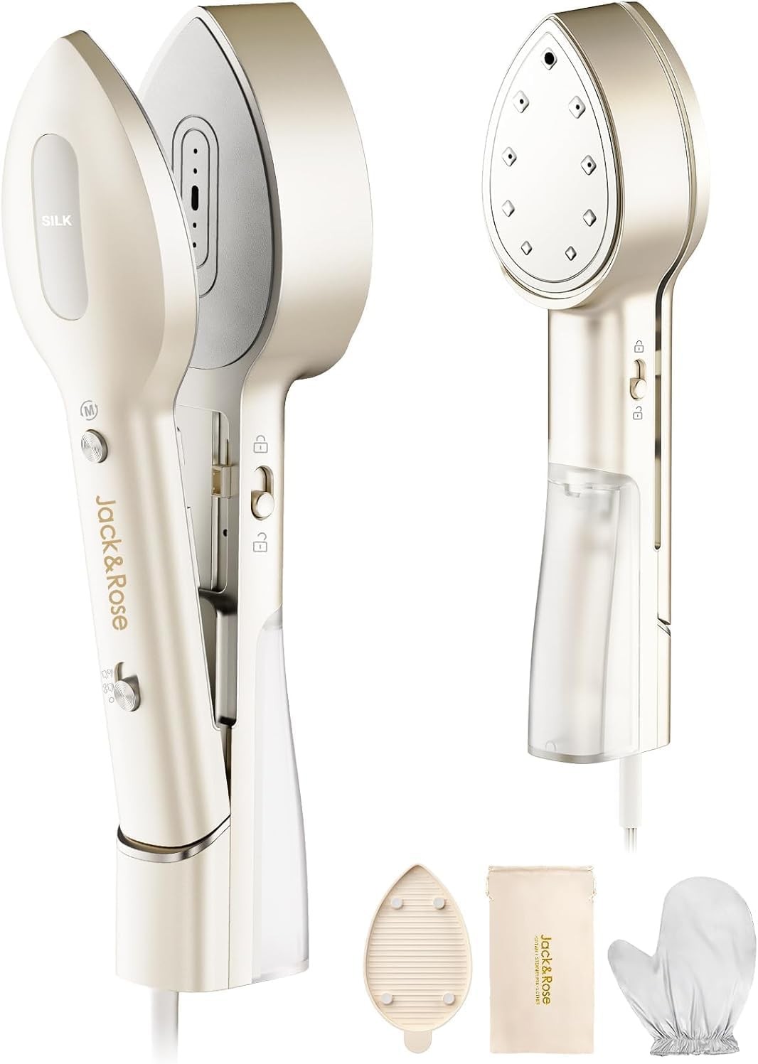 Jack & Rose Clothes Steamer,Press Travel Steamer Iron 3 in 1, Dual Voltage 110-240V, 6+1 Fabric Settings,Travel Iron for Clothes, Garment Clothing Steam,15s Heat-Up
