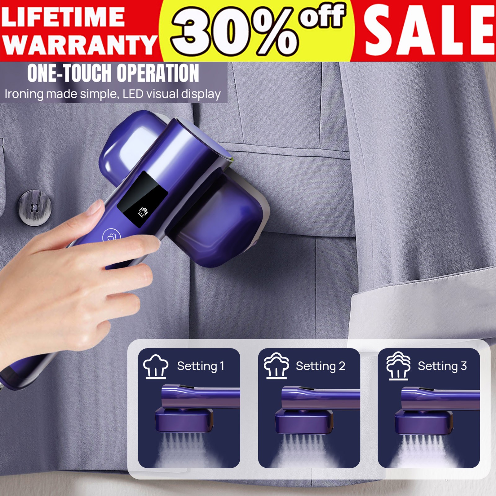 Portable Travel Steamer Iron, 1200W Handheld with LCD Display, Fast Heating1690