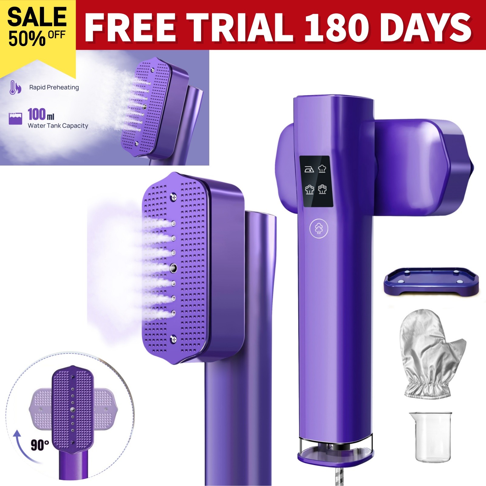 QWUE Travel Steamer for Clothes, Portable 2 In 1 Clothes Steamer, 15S Fast Heat-up 1200W Travel Steamer Iron, 90° Rotatable Handle, 5 Modes, 15 Minutes of Continuous Steam for Travel and Home (Purple)