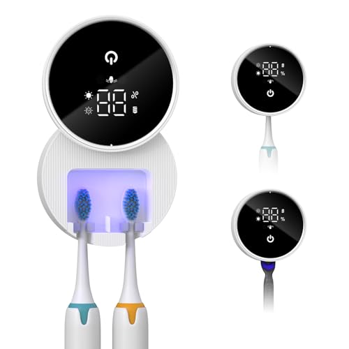 ORIA UV Toothbrush Sanitizer & Holder, UV Steriliser Toothbrush Cleaner with Sterilization, Automatic Drying Cycle, LED Display, Rechargeable for Travel, Home, Bathroom