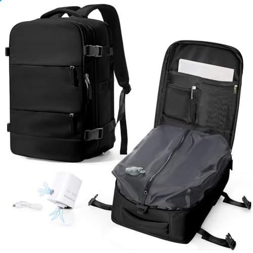VENATIN Vacuum Backpack Travel Bag, Carry-ons Easyjet 45x36x20 Cabin Size Travel Backpack,Compression Travel Vacuum Bags for Travel with Pump,Waterproof Casual Daypack Laptop Rucksack Women Mens,Black