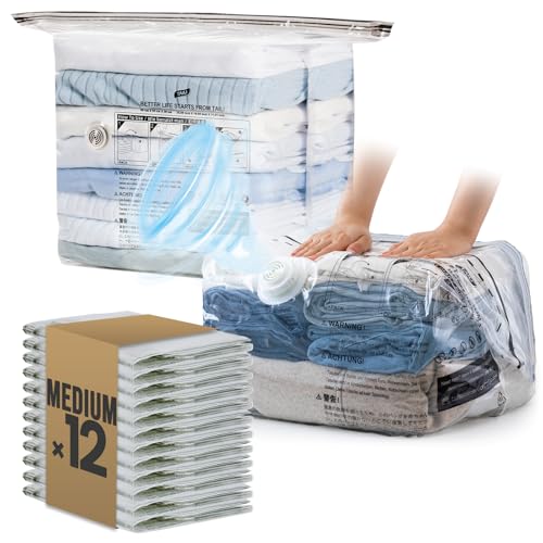 TAILI Small Vacuum Bags for Clothes Travel Vacuum Storage Bags 12 Pack Combo 4L, 4M, 4S Reusable Saves 80% of Storage Space Saver for Clothes, Bedding, Travel, Moving