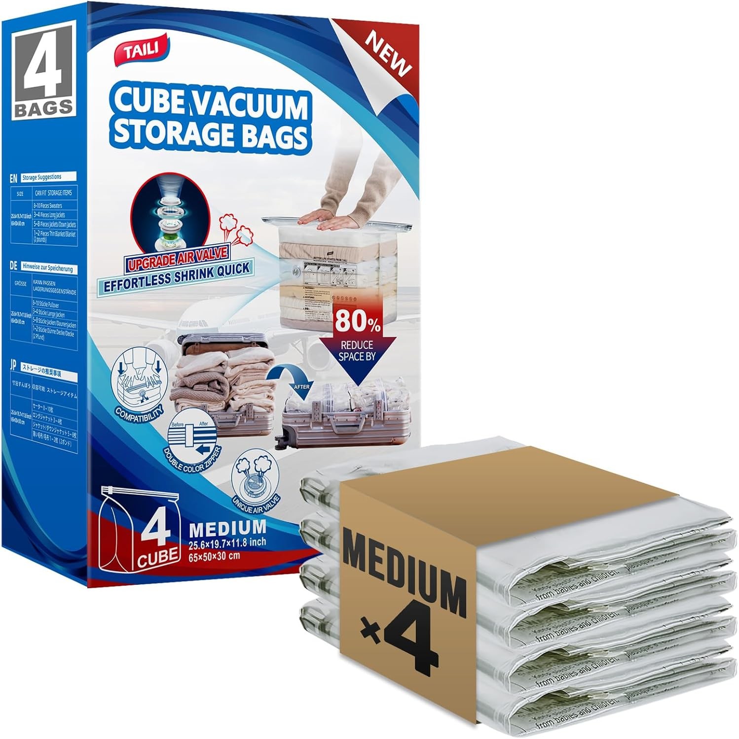 TAILI Cube Travel Vacuum Storage Bags 4 Pack, Medium Size (25x19x11 inch), Reus