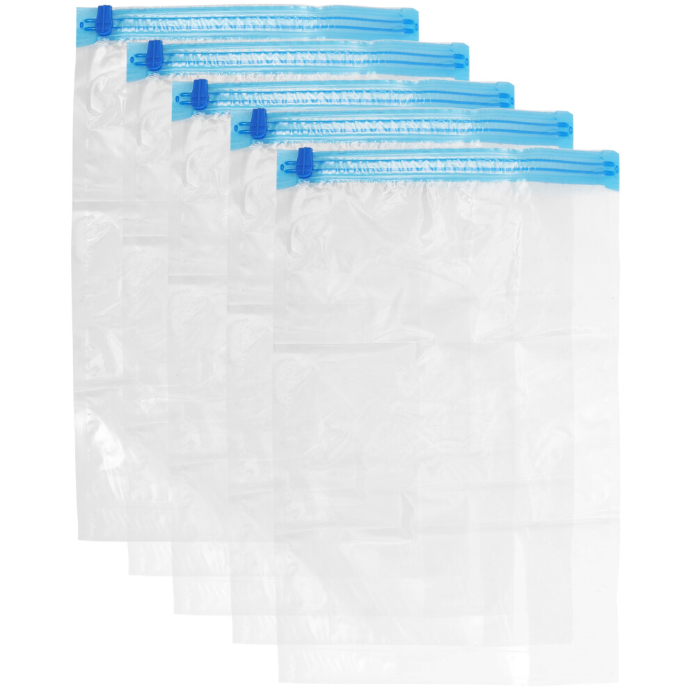 OHS Vacuum Storage Bags, Compression Bags for Travel Vacuum Bags for Clothes Vac Pack Bags Airtight Sealing Clips Hand Pump Included, Clear Reusable Clothes Storage Bag 5 Piece