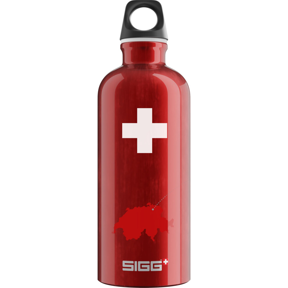 Sigg - Aluminium Water Bottle - Traveller Swiss Country - Climate Neutral Certified - Suitable For Carbonated Beverages - Leakproof - Lightweight - BPA Free - Red - 0.6L