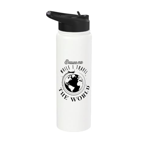 Excuse Me While I Travel the World Funny Traveller Gift Stainless Steel Insulated Water Bottle